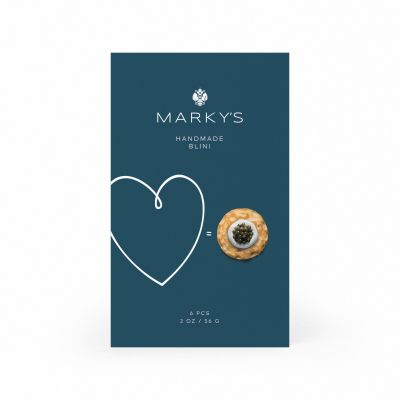 Marky's blini are handmade locally in Miami using our heirloom family recipe. Packed in a beautiful silky envelope featuring Marky's signature color, "Midnight in the Tropics," these delightfully buttery bites make a delicious accompaniment for any caviar tasting and foie gras, smoked salmon, cheese, and jam. Their large 3-inch-diameter size allows them to serve as an ideal base for appetizers or side dishes.